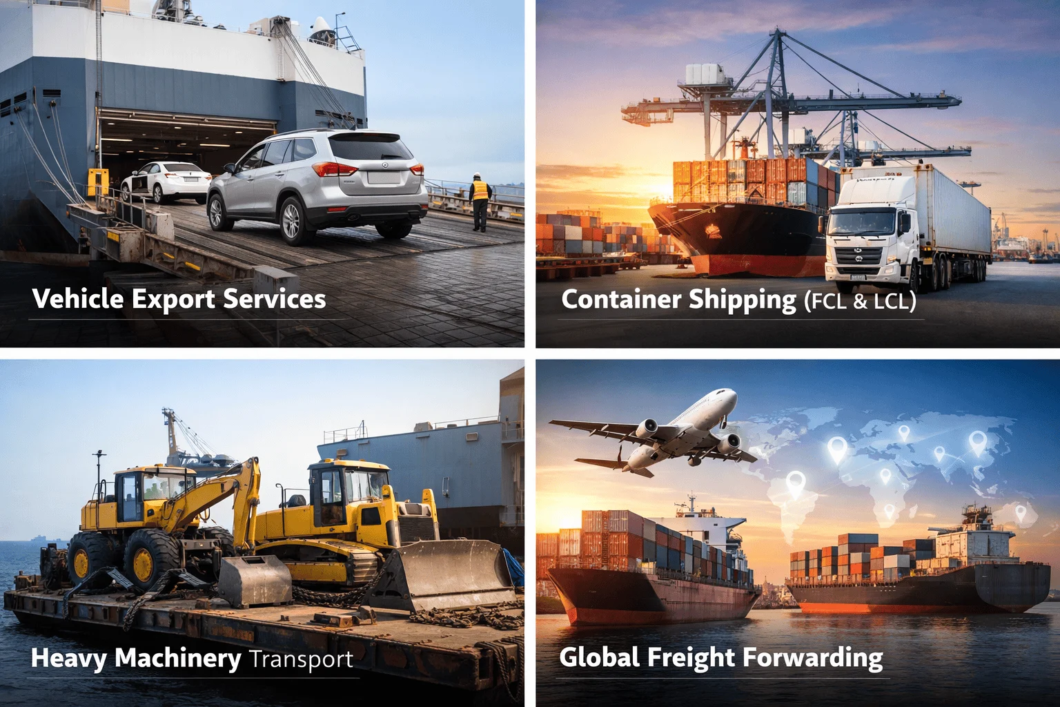 We handle the complete shipping process — from vehicle or cargo pickup, documentation, port handling, to ocean freight and final delivery.